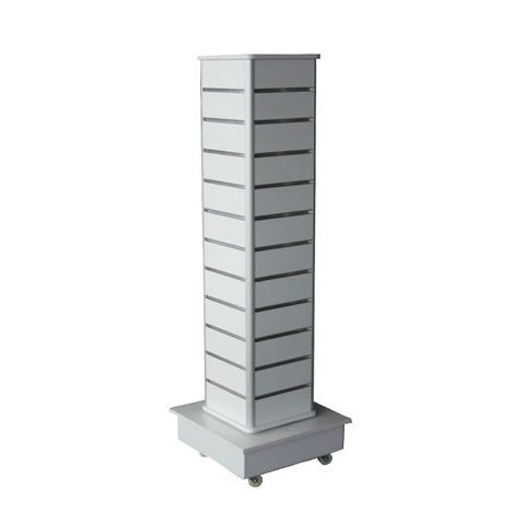 Diseño moderno, personalizado, mdf, de pie, blanco, giratorio de 4 vías, pantalla de pared